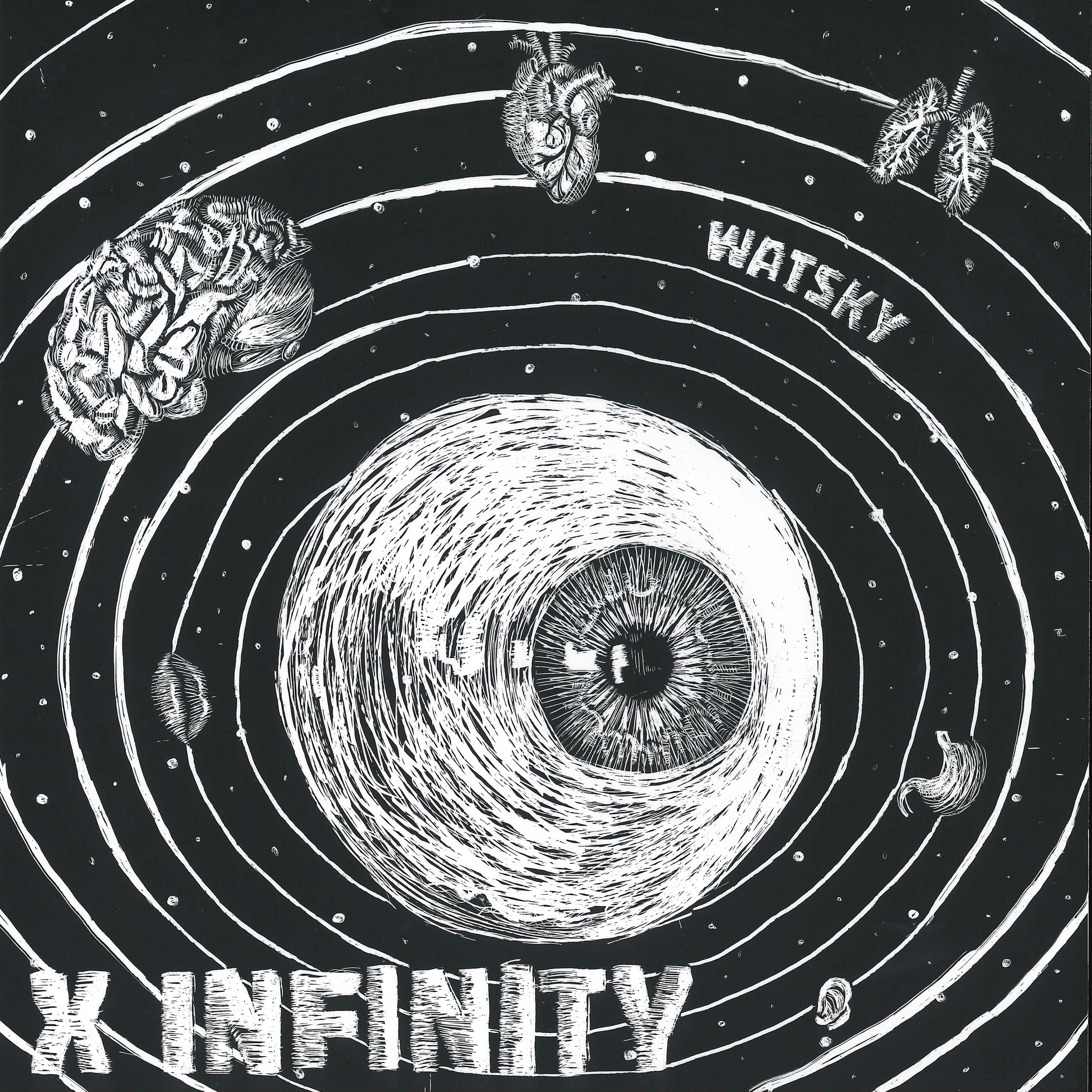 Scratchboard Illustration Album Cover for "X Infinity" by Watsky